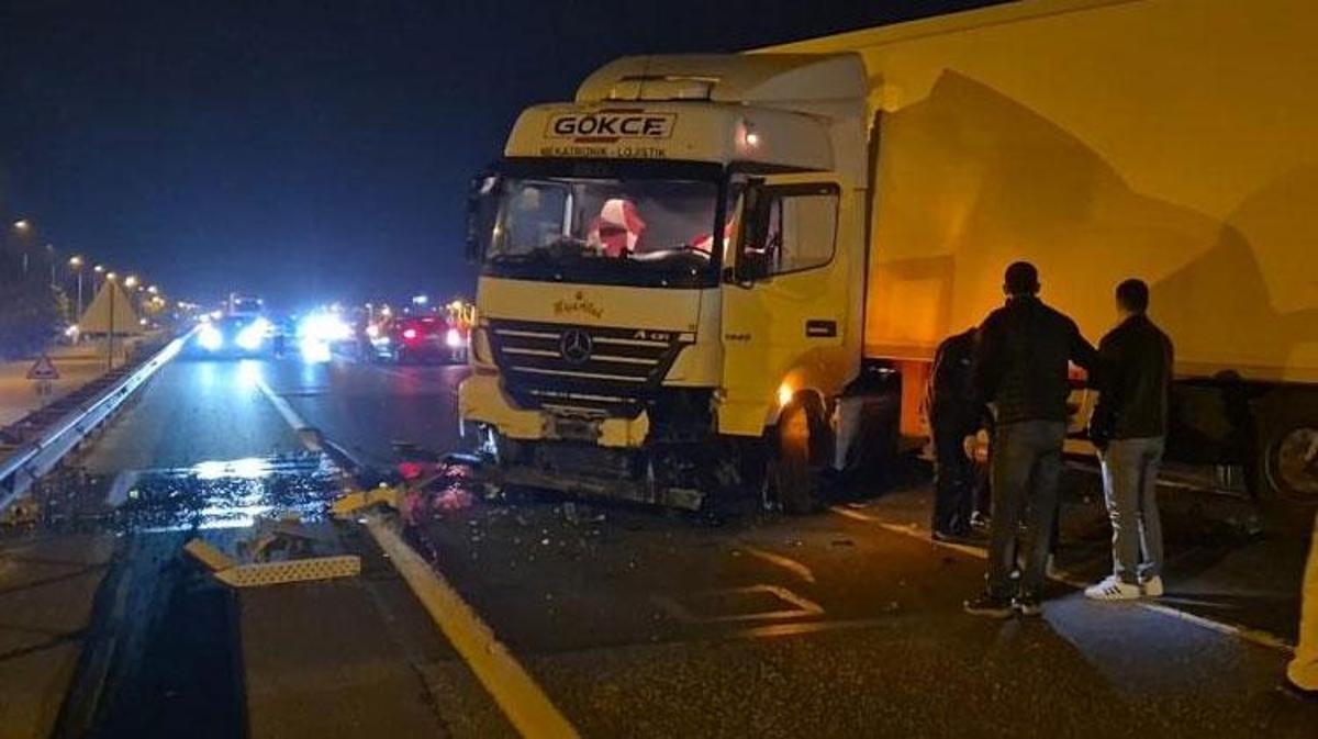Bariyerlere çarpan tır, Tekirdağ-İstanbul yolunu trafiğe kapattı