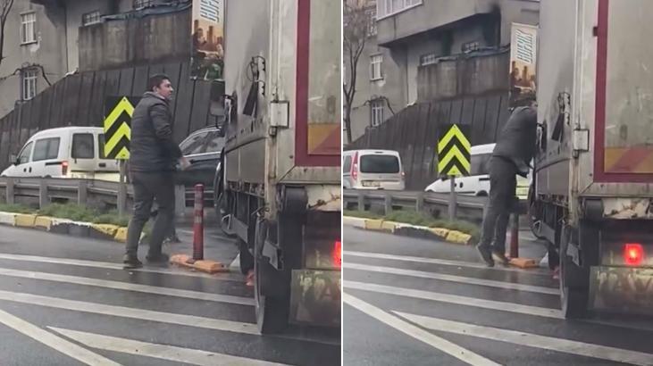 Trafikte 'kaynak' tartışması! Kamyonetin önünü kesip camını yumrukladı