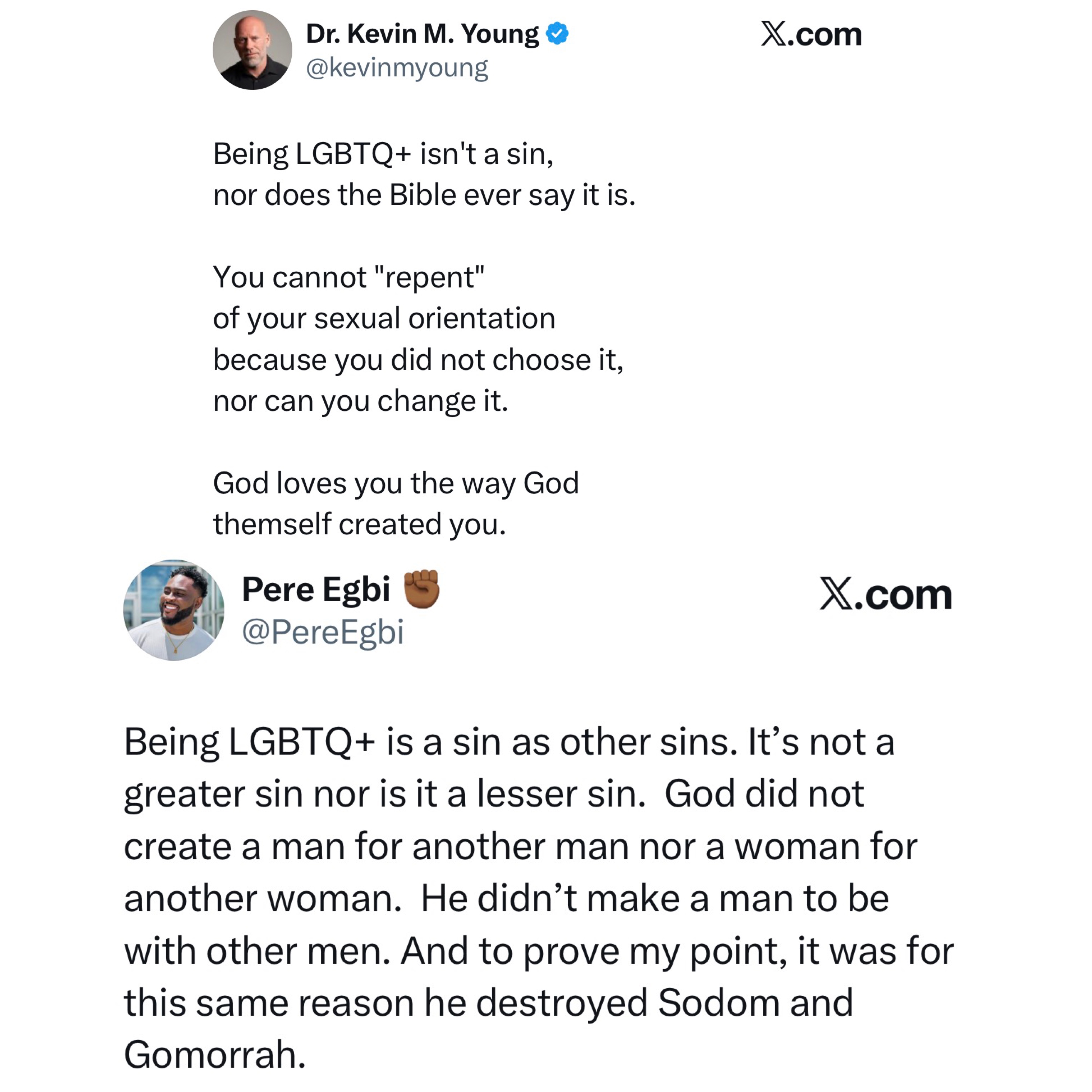 Being LGBTQ+ is a sin. God did not create a man for another man nor a woman for ...