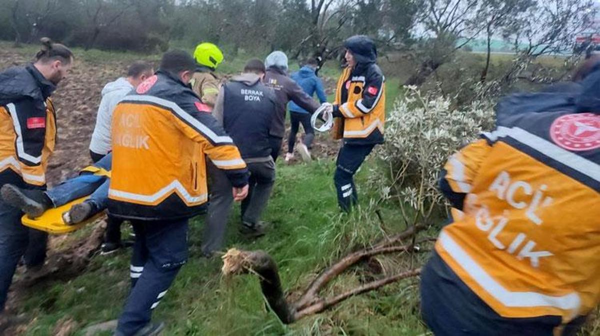 Havran’da kontrolden çıkan otomobil zeytinliğe savruldu